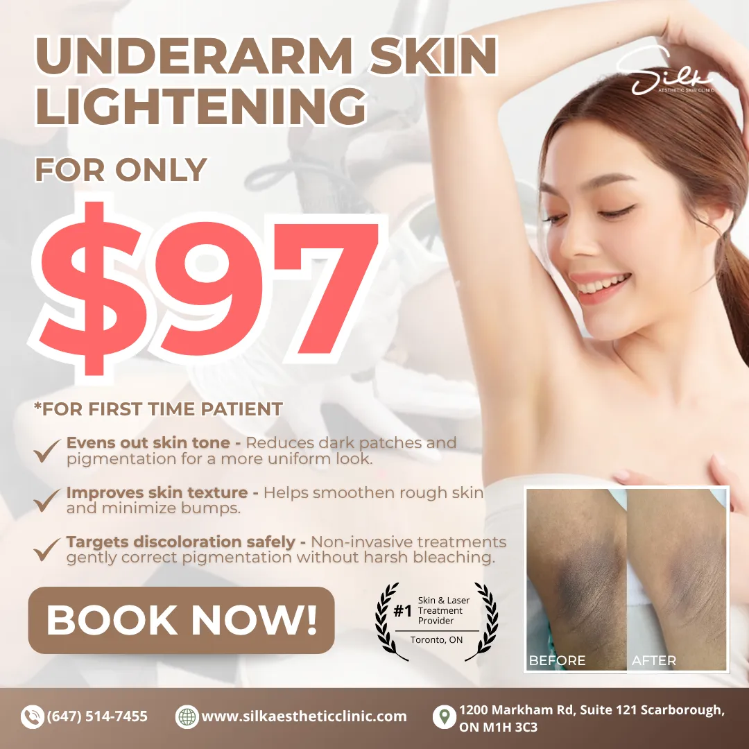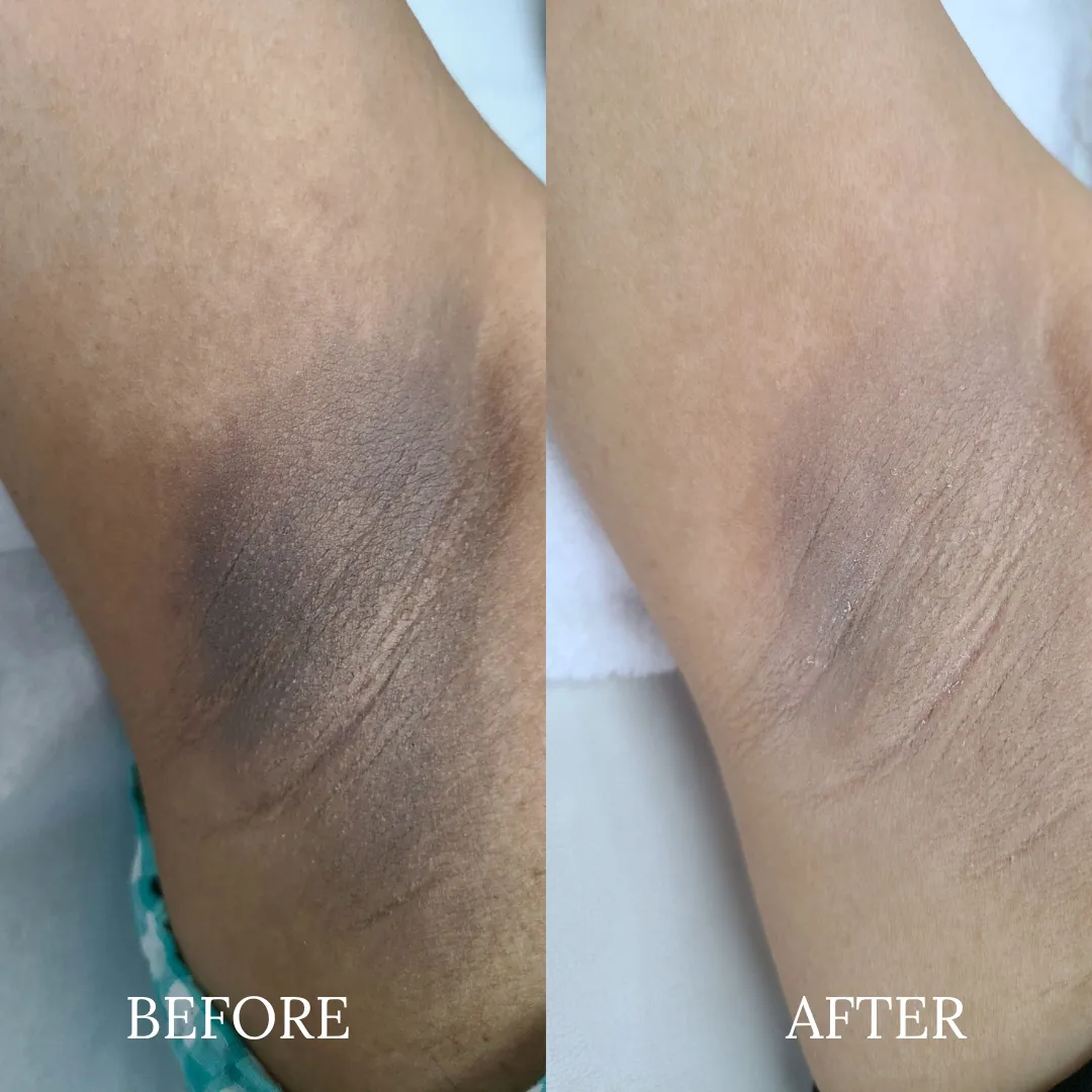 Tired of dark underarms making you feel self-conscious? Scrubs and creams not working? Our treatment fades discoloration, smooths texture, and evens skin tone—all in just one session! Feel confident raising your arms again.